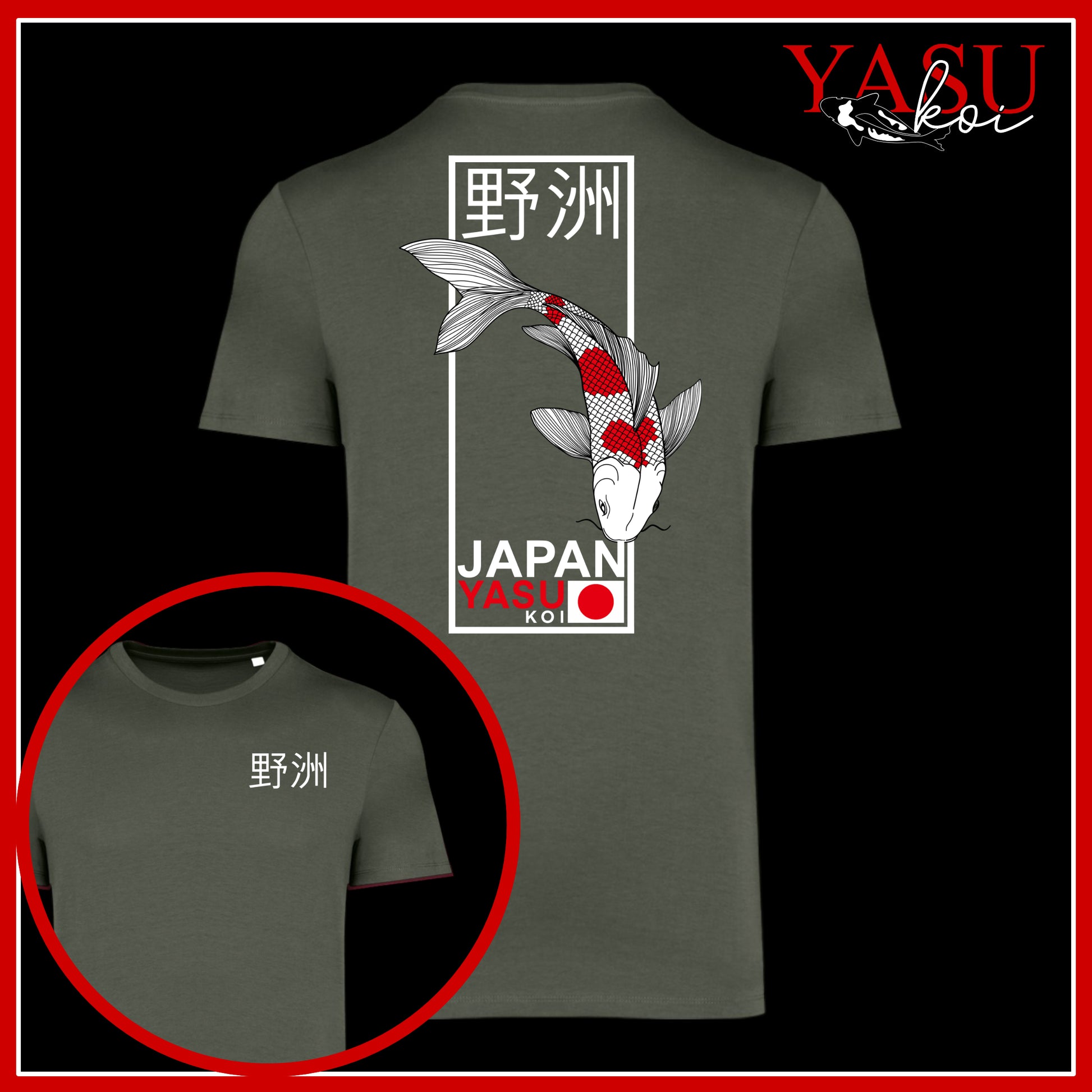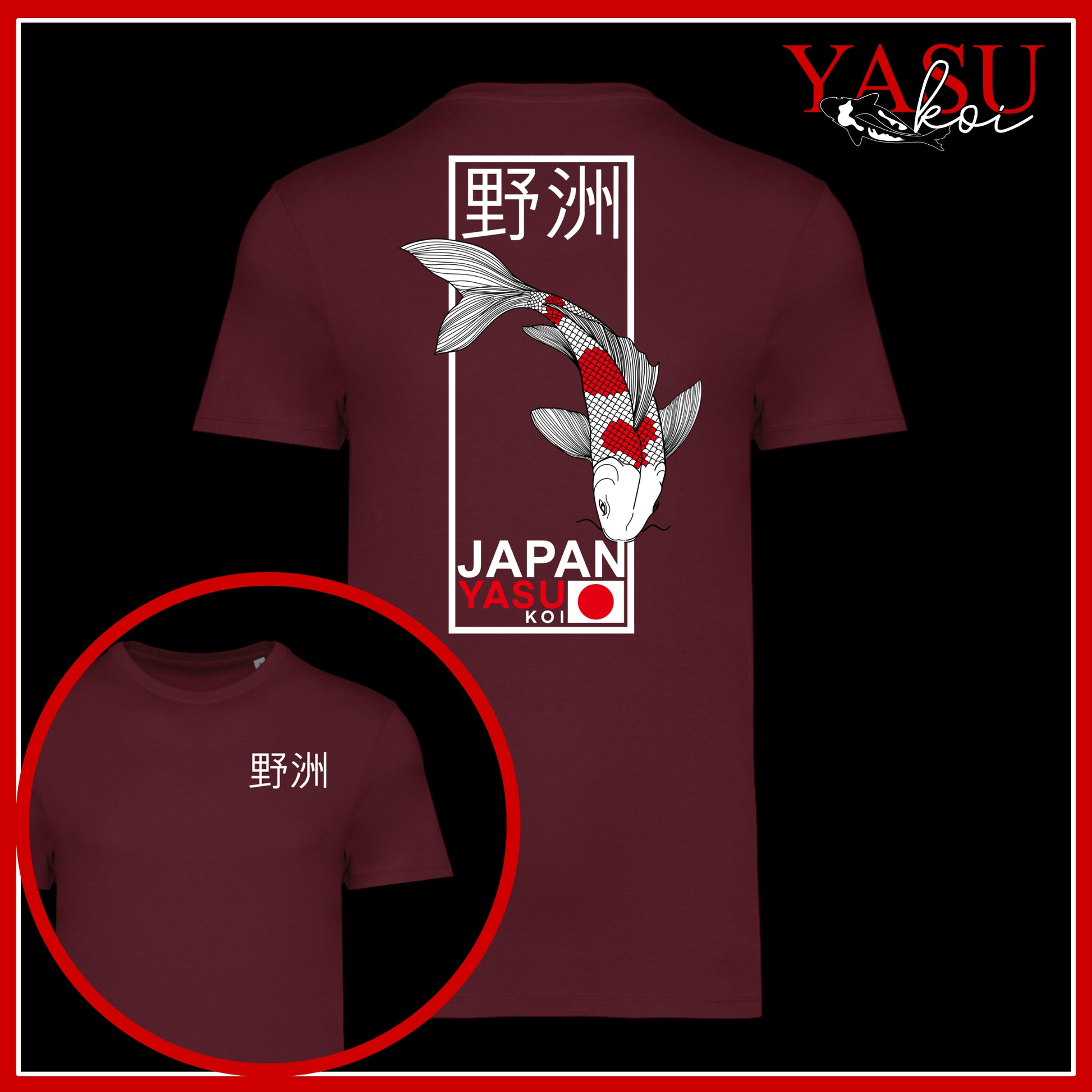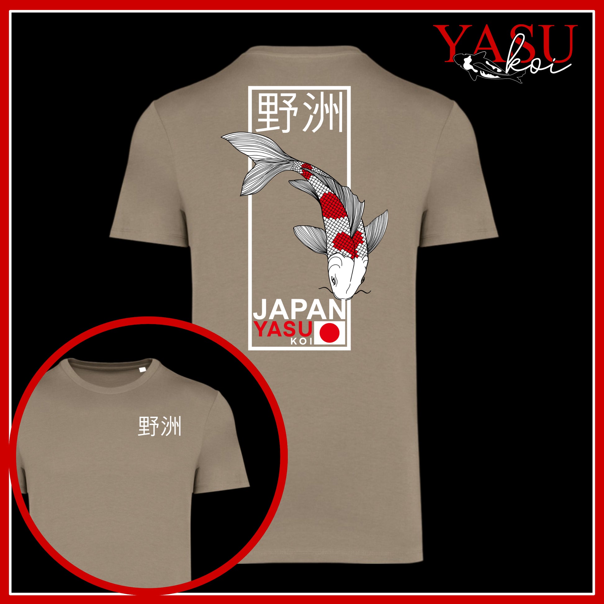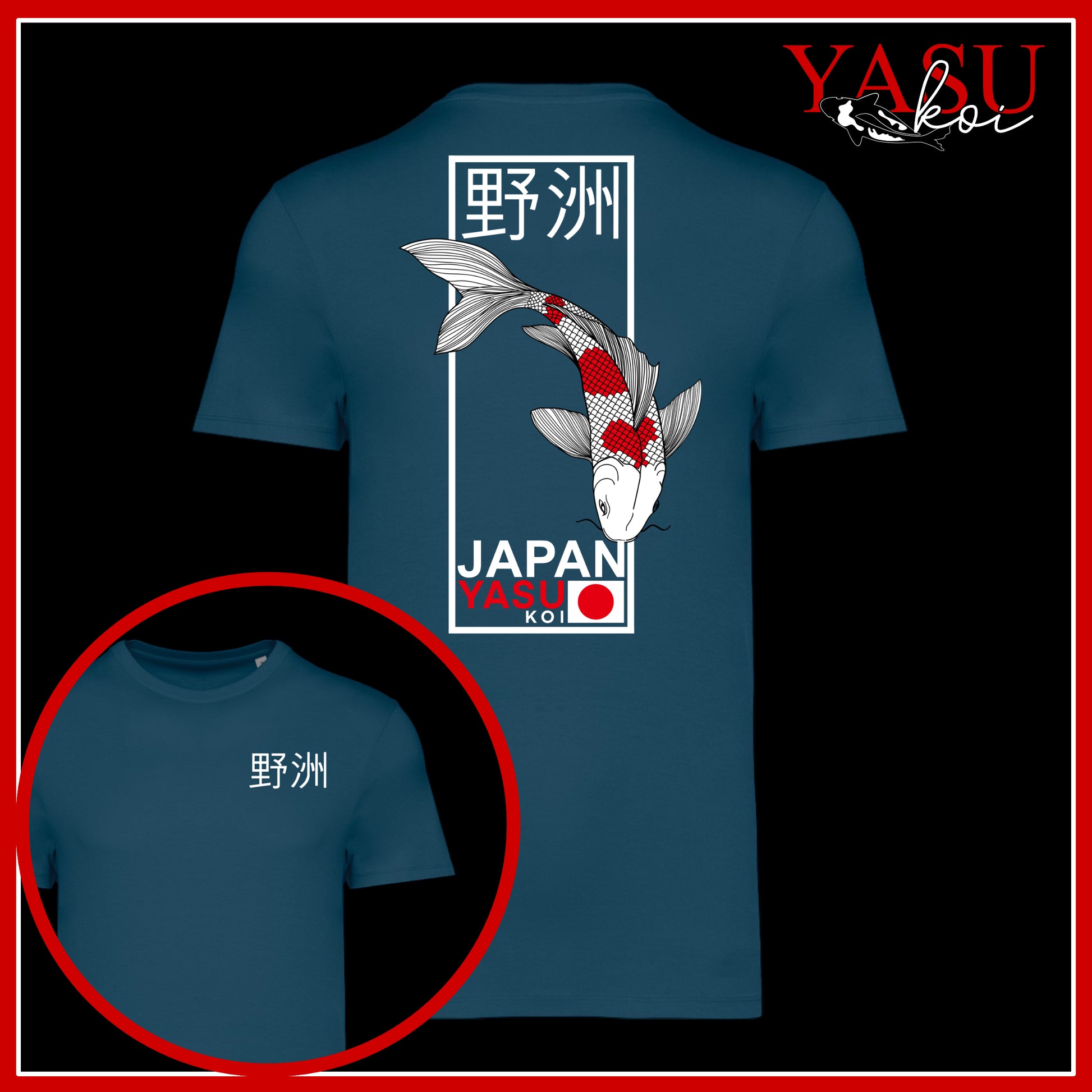 Celebrate Japanese artistry and street-style design with this premium Organic Cotton Koi Graphic Tee. The back features a striking illustrated koi fish in motion, framed with bold linework and Japanese characters reading 'Yasu Koi', symbolising strength, perseverance, and good fortune. The front remains clean and minimal with a subtle matching chest print for a balanced, modern look.