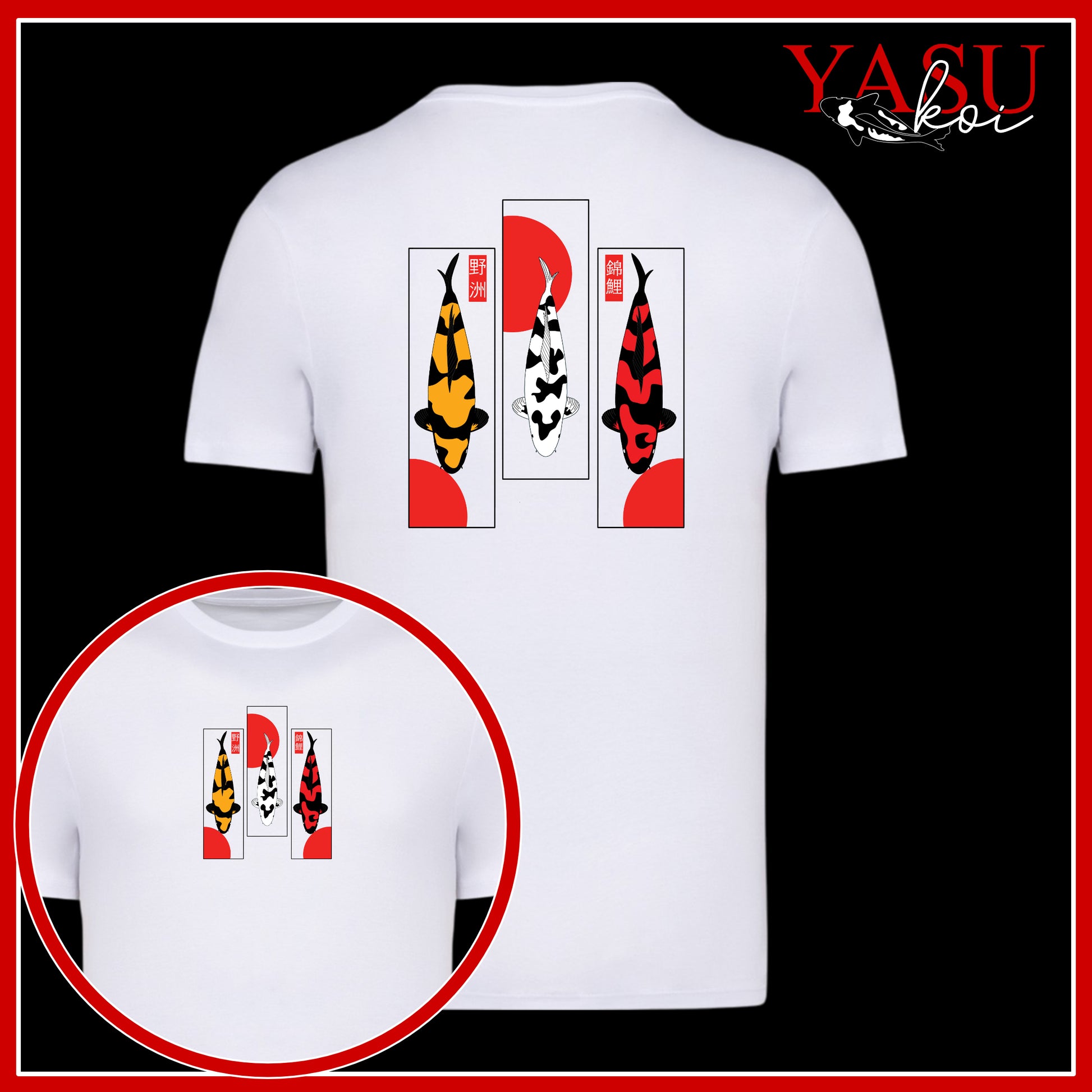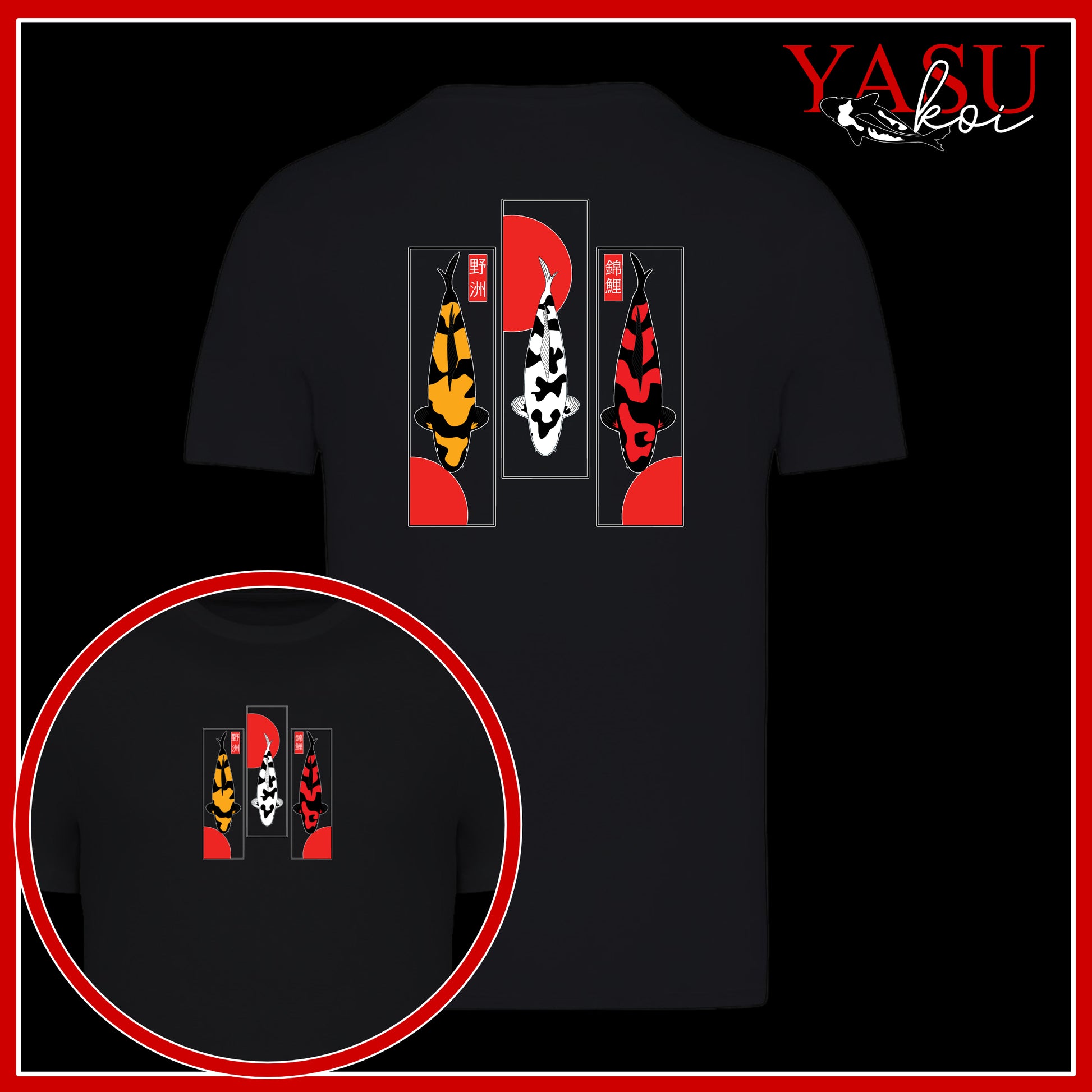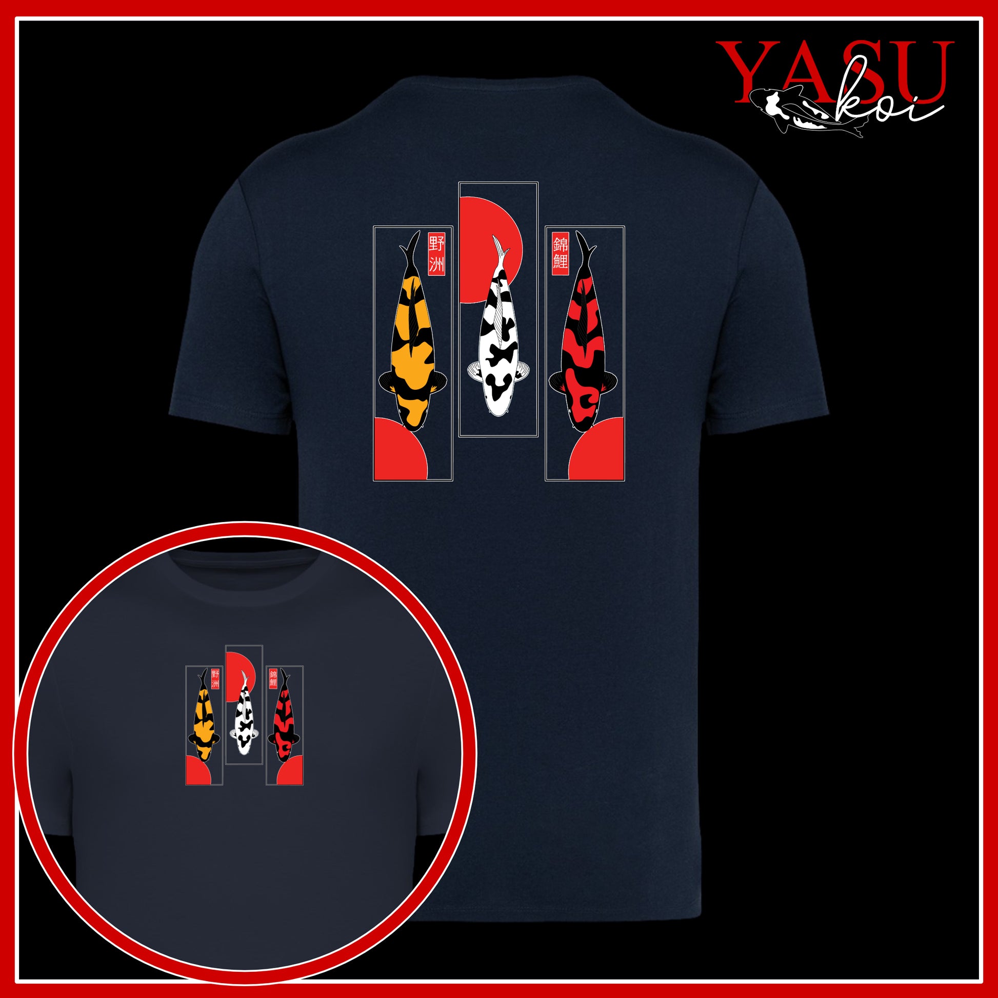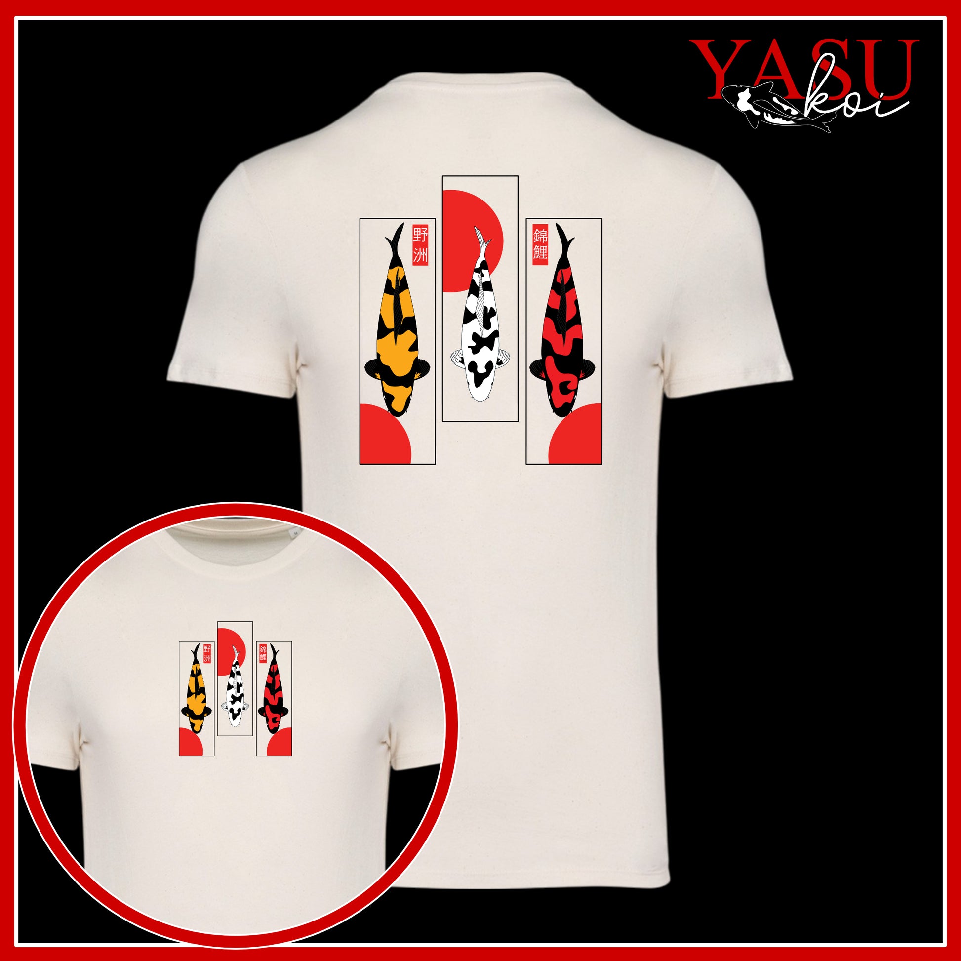 Make a bold statement with our Utsuri Trio Organic Cotton T-Shirt, where minimalist Japanese-inspired design meets everyday comfort. Featuring three striking koi Ki Utsuri, Shiro Utsuri and Hi Utsuri, this artwork symbolises strength, transformation, and balance. Framed by clean vertical panels and rising sun accents, the design blends modern streetwear with traditional Japanese aesthetics for a timeless look.